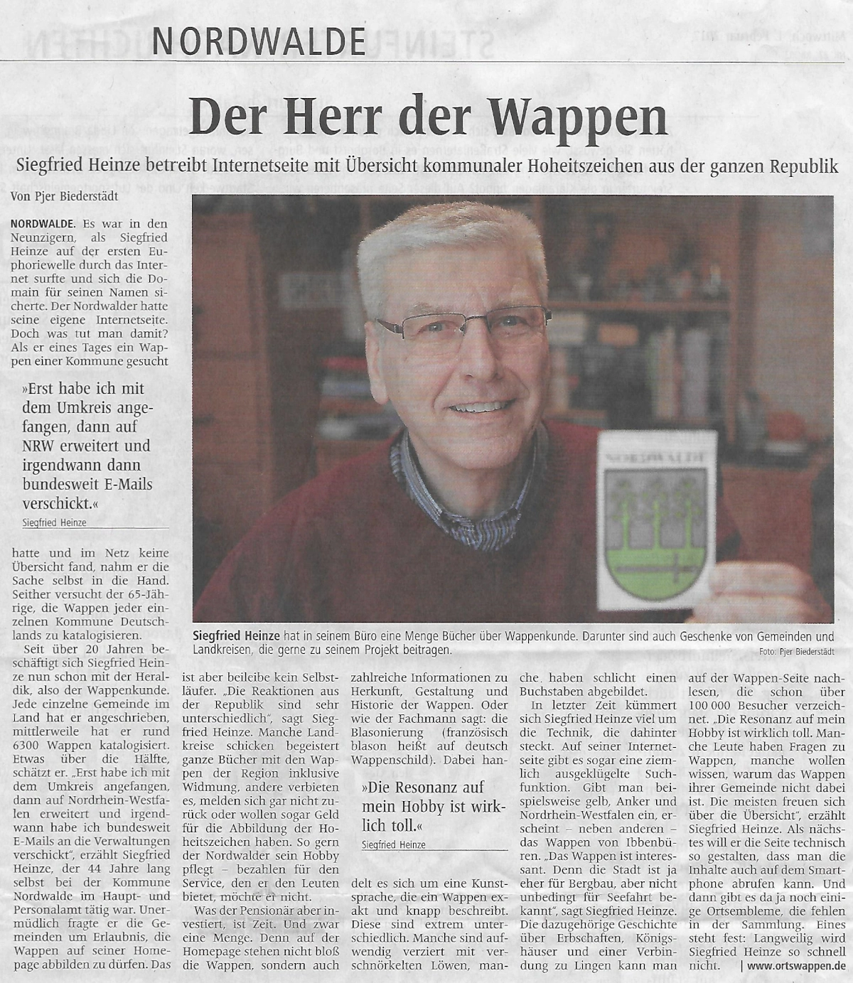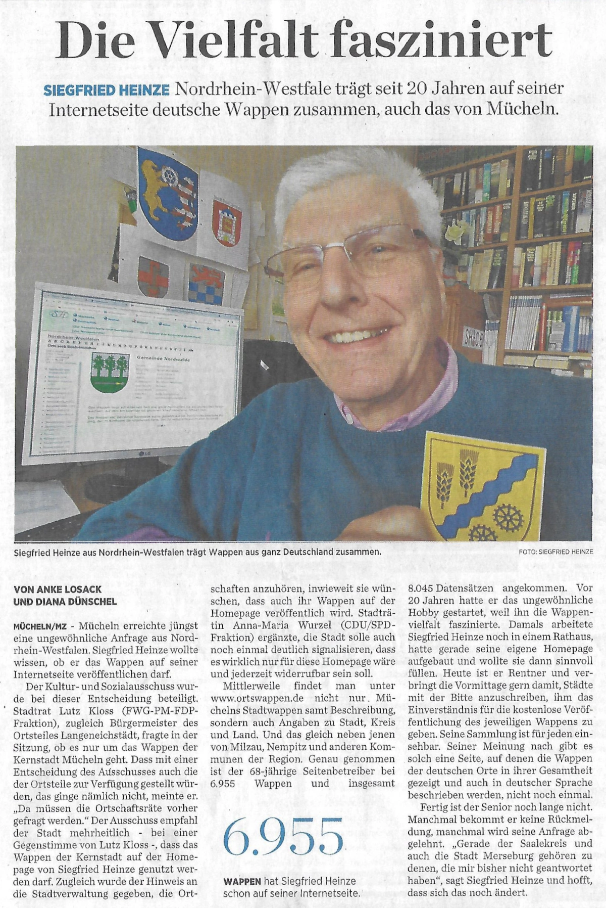 In den vielen Jahren meines Bemühens, eine Sammlung der Wappen der deutschen Kommunen zusammen zu stellen, wurde darüber auch mehrfach in der Presse meiner Heimat, aber auch in anderen Bundesländern berichtet. Diese Presseartikel stelle ich in der Folge dar.