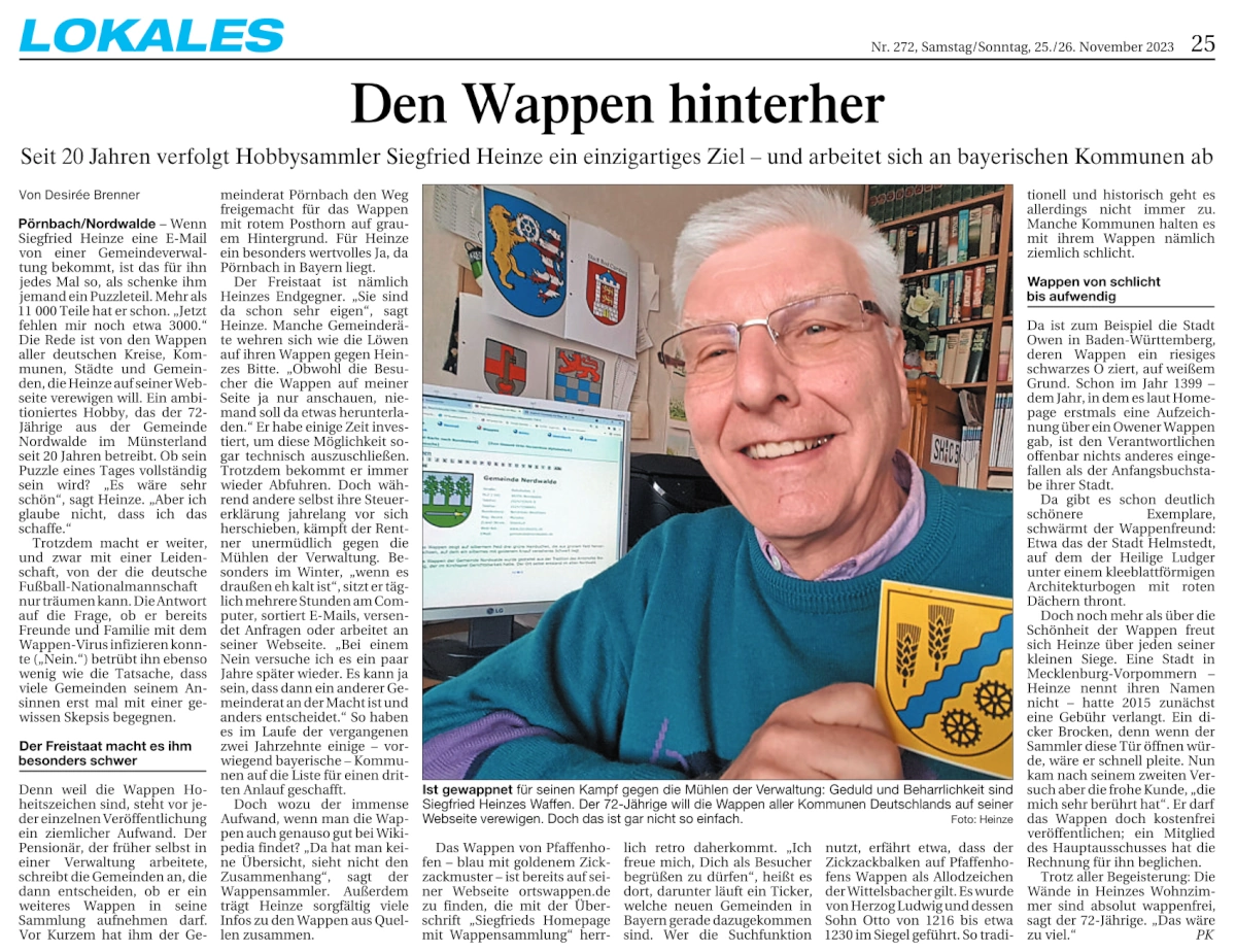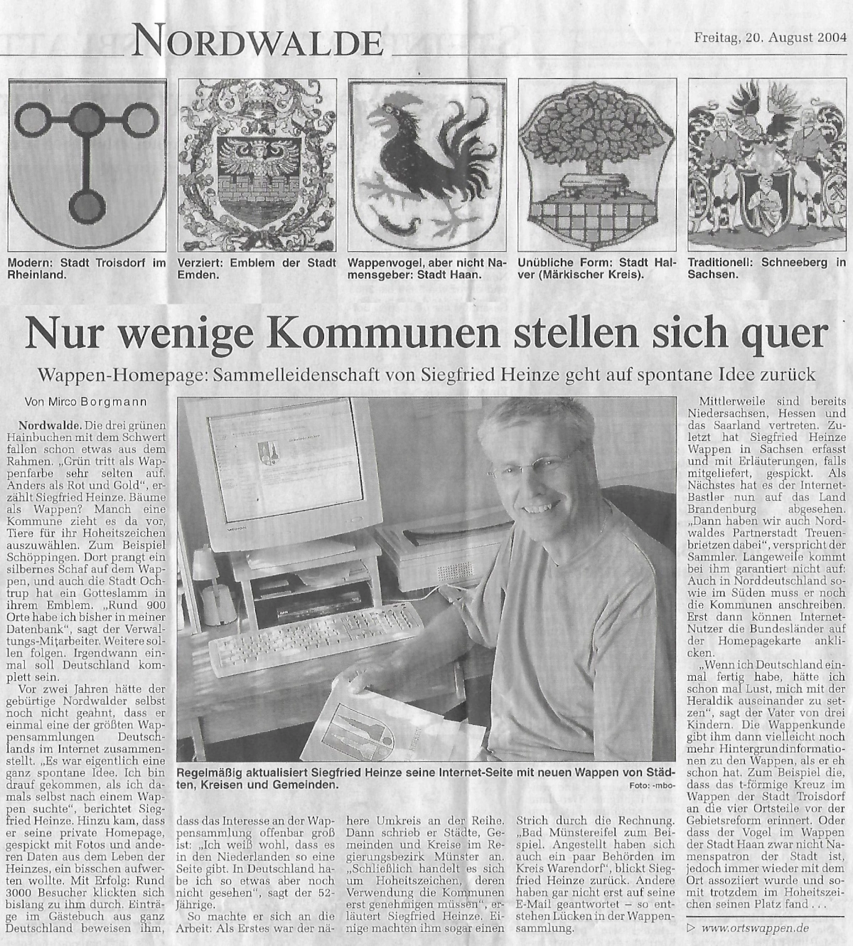 In den vielen Jahren meines Bemühens, eine Sammlung der Wappen der deutschen Kommunen zusammen zu stellen, wurde darüber auch mehrfach in der Presse meiner Heimat, aber auch in anderen Bundesländern berichtet. Diese Presseartikel stelle ich in der Folge dar.